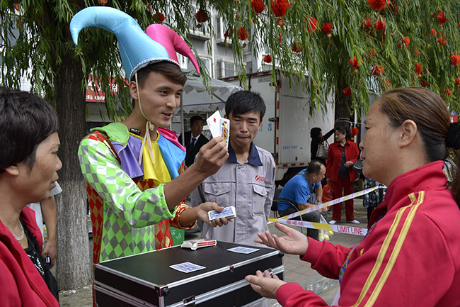 9月18日,是康姿百德公司十周年慶典參觀活動(dòng)的第二天,前來(lái)參觀科技園的各地朋友絡(luò)繹不絕、熱情不減。參觀完科技展廳和制造中心,大家爭(zhēng)相與“福、祿、壽、財(cái)”卡通精靈和十周年慶典大型絹花景觀合影,期待把最燦爛的笑容留在康姿百德。由公司員工表演的精彩紛呈的魔術(shù),看得大家瞠目結(jié)舌、翹指贊賞,一些熱心的朋友還拉起魔術(shù)師的手要求講出其中的奧秘。在“神秘雕像”前,表演者一動(dòng)不動(dòng)的神奇“騰空術(shù)”引得許多朋友駐足圍觀,大家?guī)缀跬浟颂鞖獾难谉?,一?huì)扮扮鬼臉,一會(huì)講講笑話,直至逗玩得“雕像”露出笑容,大家也跟著哈哈大笑起來(lái),歡樂的笑聲給康姿百德科技園增添了不少喜慶祥和。