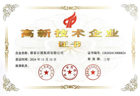 康姿百德自2015年首次通過認(rèn)定以來,已連續(xù)多次通過復(fù)審。這不僅是對(duì)康姿百德創(chuàng)新能力的權(quán)威認(rèn)可,也標(biāo)志著康姿百德在技術(shù)研發(fā)實(shí)力、成果轉(zhuǎn)化效率以及綜合管理水平方面均達(dá)到了國(guó)家審核的標(biāo)準(zhǔn)。