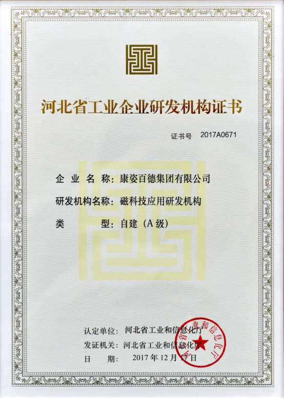 康姿百德在研發(fā)經(jīng)費(fèi)占比、在研項(xiàng)目數(shù)量、知識(shí)產(chǎn)權(quán)產(chǎn)出等方面均遠(yuǎn)超河北省工業(yè)和信息化廳的基本要求,展現(xiàn)出系統(tǒng)化、規(guī)?;难邪l(fā)實(shí)力。該榮譽(yù)充分說明了康姿百德在磁應(yīng)用技術(shù)領(lǐng)域的領(lǐng)先地位,是對(duì)康姿百德在磁科技領(lǐng)域所做貢獻(xiàn)的認(rèn)可。